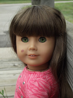 Lastly, I got Katrina's ears pierced and got her the turquoise glasses. There is a long story behind the glasses. I first was going to get the lime glasses which were on sale on the website, but American Girl doesn't carry sale items in the store. Then I was going to get the chocolate brown glasses, because they look like my glasses, but it was out of stock in the store. The lady said that when I check out I would pay for them at the desk and then they would ship it to my house for free. So I did that when I checked out, but American Girl doesn't sell those glasses anymore, so I choose the turquoise glasses.